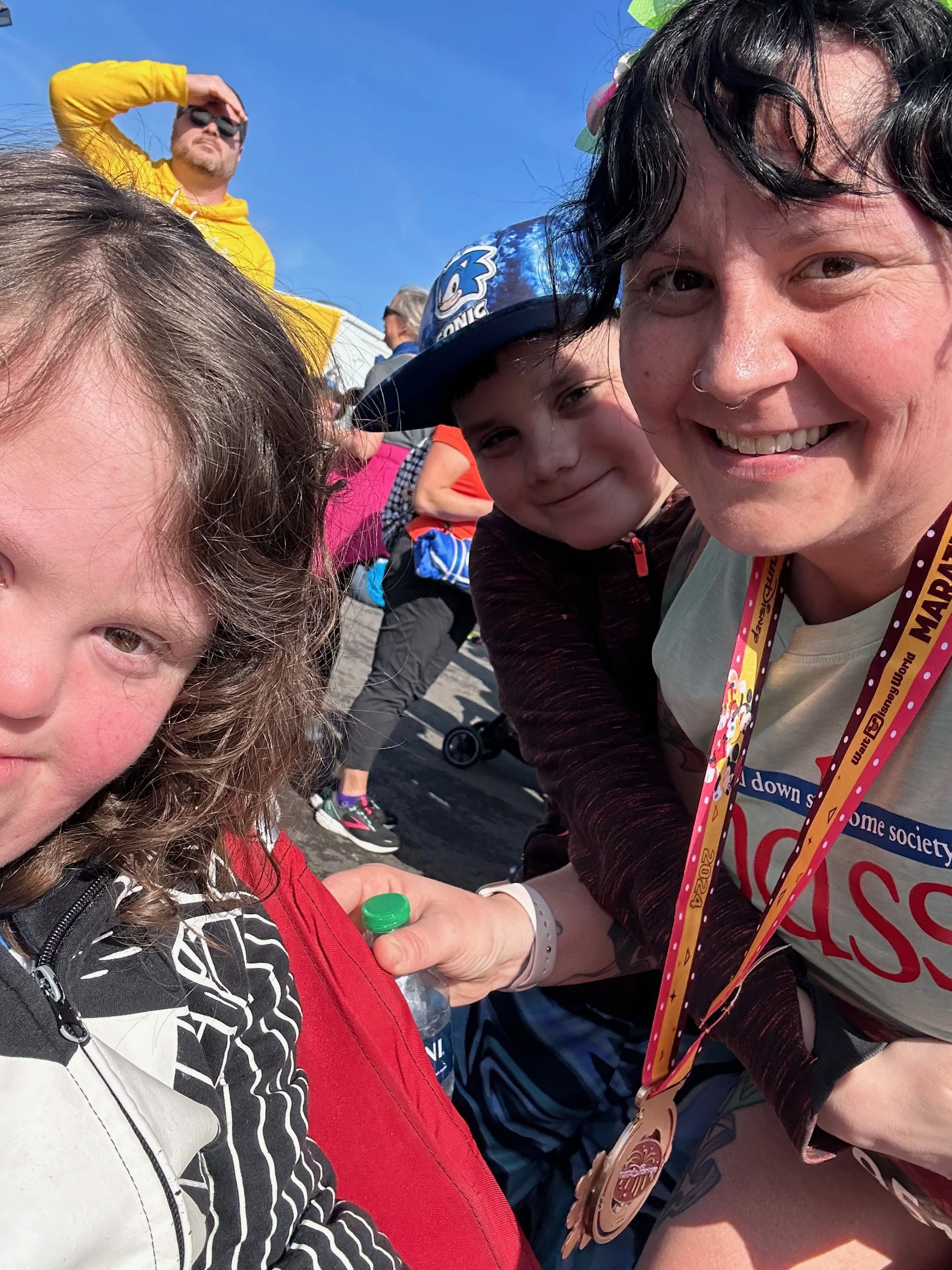 Heather was there to independently fundraise for a Down syndrome achievement center called GiGi’s Playhouse. She targeted the goal of $321 and running the distance of 3.21 miles, representing three copies of chromosome 21, the genetic feature that causes Down syndrome. Easily achieving that objective, the funds ended up at $4,000, and according to Heather’s calculations, that scaled up to the distance of a marathon.